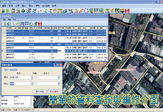 2、全自動GPS定位功能,系統能自動判斷目前所在位置之地段地號,並自動開啟地籍圖、正射影像圖。